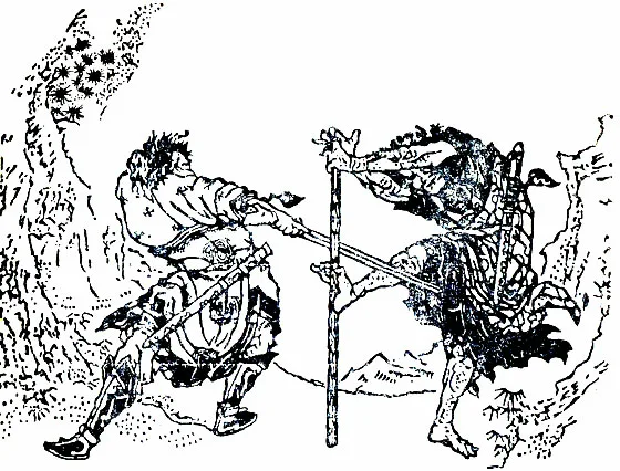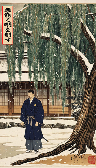 Как рассказывает легенда, однажды ранним морозным утром Акаяма вышел прогуляться в сад. Здесь его внимание привлекла замечательная картина: накануне выпал обильный снег, и у многих деревьев были сломаны ветви, только ива (по другим источникам — вишня-сакура) стояла как ни в чём не бывало — тяжелые комья снега просто соскальзывали с её упругих ветвей. Говорят, Акаяма при виде неповрежденных ветвей ивы пережил озарение. В один миг он понял, что противостоять силе силой бесполезно и губительно, нужно уклоняться от атаки, перенаправлять силу и использовать её себе на пользу.